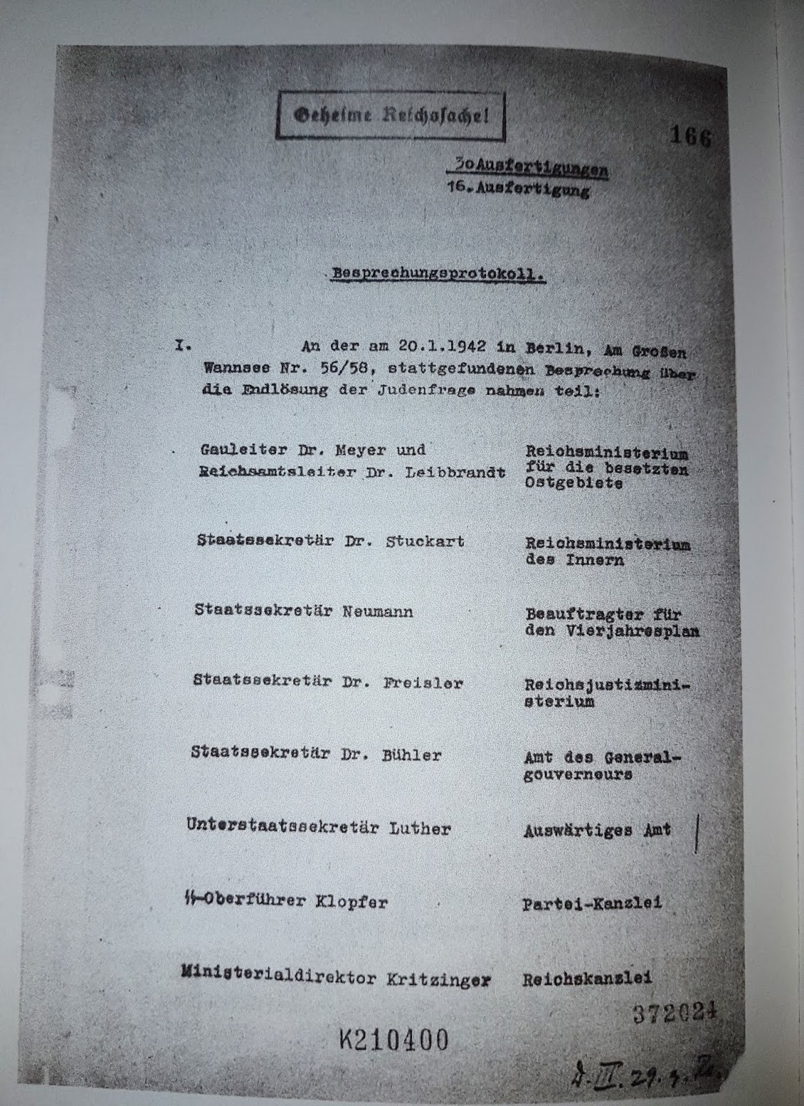Ministerien waren anwesend. Und Adolf Eichmann nahm als Referatsleiter im